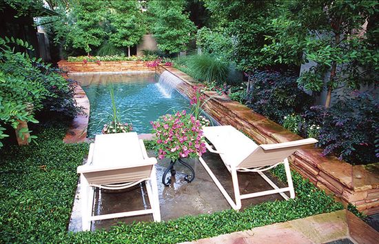 Jika Anda memiliki sebuah kebun pada halaman belakang, tidak adal salahnya jika Anda berencana untuk mengombinasikannya dengan sebuah kolam renang. Untuk jenis tumbuhanya Anda bisa pilih tumbuhan rambat atau gantung pada dinding sekitar kolam. Jangan lupa !! Anda juga bisa menambahkan area bersantai pada pinggiran kolam untuk menikmati waktu libur bersama keluarga.